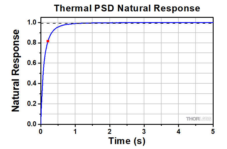 Figure 3.3 Natural Response of the S440C and S442C Detectors. The dotted line is at 0.99 and the red square indicates the point on the curve corresponding to a single sensor time constant.