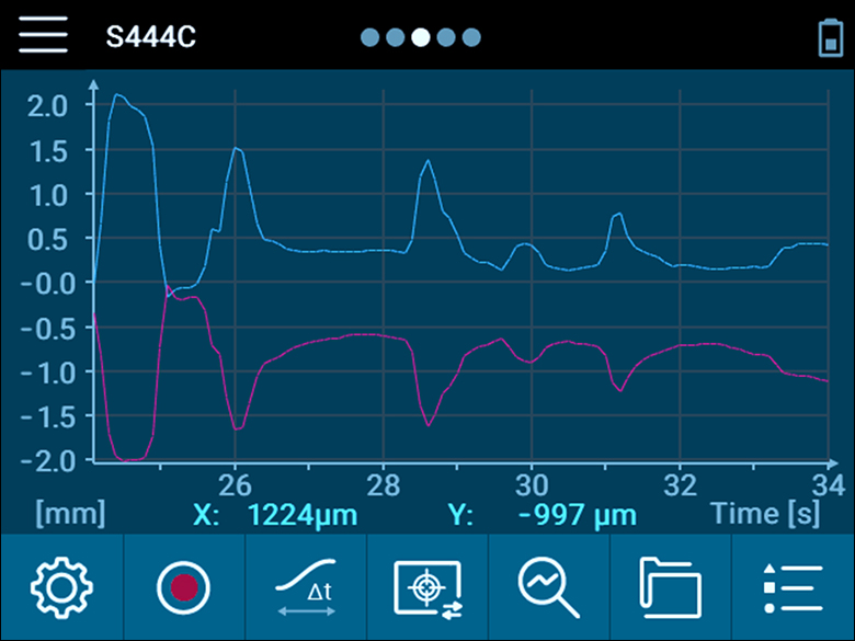 - Data Logging Graph: a graph of the X and Y positions over time, or a graph of total power over time. The user can touch a single button to toggle between the position and power graphs.
