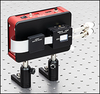 Each EXULUS-SE1 unit is shipped with two ECM175 anodized aluminum clamps which snap onto the bottom of the SLM housing and are secured by tightening the flexure lock using the 2 mm (5/64") hex locking screw. Each ECM175 clamp has a #8 (M4) counterbore hole for easy mounting on our Ø1/2" posts or any surface with an 8-32 (M4) mounting hole. For beam-tuning applications, the clamps can secure the EXULUS-SE1 SLM to our KM200PM/M Kinematic Mount or our PY005(/M) Five-Axis Stage.