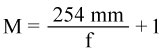 where M is the magnification and f is the focal length of the lens in mm. When using this equation, the magnification of EYL06X is 5.5 and the magnification of EYL10X is 8.9.