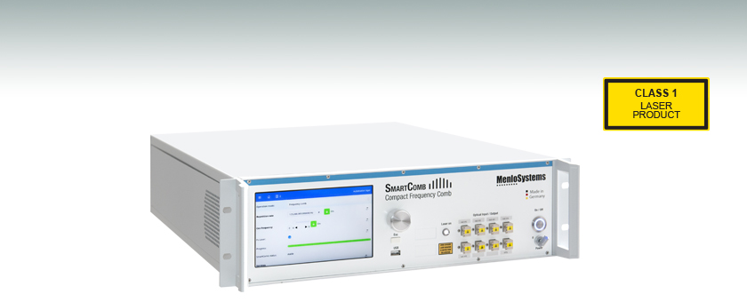 SmartComb is an optical metrology system in a compact 19” 3U package. It features the first fully automated turn-key optical frequency comb designed and built for use both inside and outside of the optics lab. It measures optical frequencies anywhere in the 630 - 2000 nm wavelength range, and can measure the frequency of external lasers with 14 digits of precision. Alternatively, it can provide optical reference lines within the same spectral range (choose wavelength when ordering).