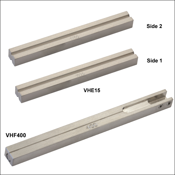 These Transfer Clamps and V-Grooves are used with the VHF Transfer Bottom Inserts sold directly above to move a single fiber between various Vytran systems with minimal loss of alignment. For example, a fiber can be placed in a transfer insert and cleaved using the LDC401 Fiber Cleaver. Then, the entire transfer insert and fiber can be moved to the GLZ4001EC for splicing.