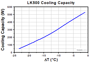 This data reflects the typical performance of Thorlabs' LK220 and LK500 chillers, and is presented for reference only. The guaranteed specifications are shown in the Specs tab, however, performance may vary from unit to unit.