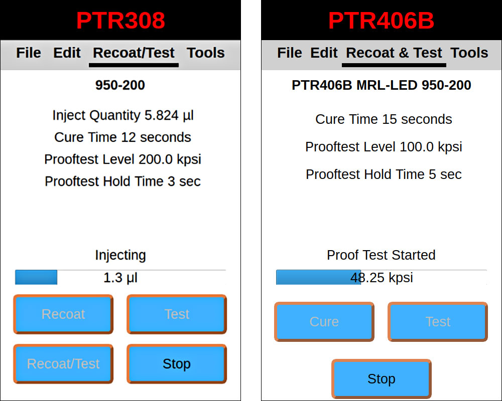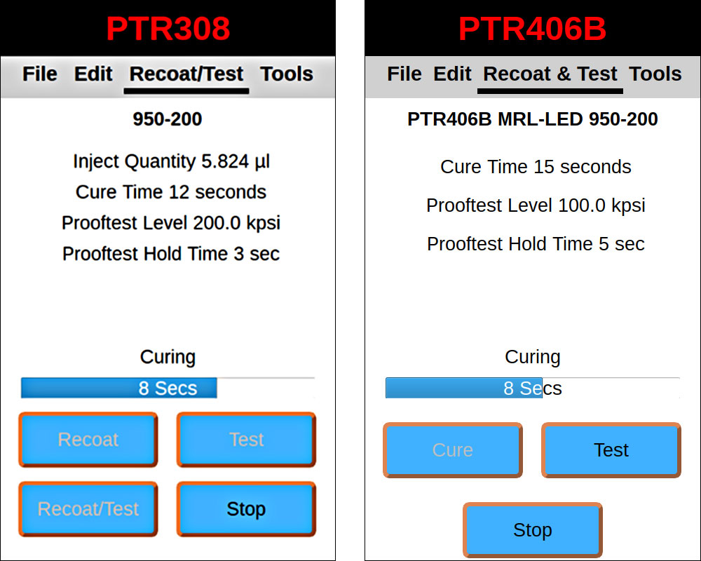 - PTR306*, PTR307*, PTR406, and PTR407 Manual Fiber Recoaters with Proof Testers, Automatic Recoat Injector