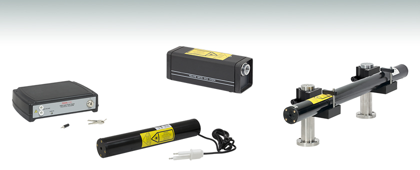 Thorlabs offers an extensive selection of CE compliant 632.8 nm (red) Helium-Neon (HeNe) Lasers with powers from 0.8 mW to 22.5 mW from stock. In addition to the applications listed here, HeNe lasers are widely used in education and as alignment tools due to their excellent beam quality and gas discharge laser characteristics. Depending upon the model, the output beam is either linearly polarized or the polarization state fluctuates over time. When the output polarization is fluctuating over time, any polarization optics in the path (intentional or unintentional) can cause large variations in the output power. Only polarized lasers should be used in applications that involve polarization optics. For a complete discussion of HeNe laser polarization, see our HeNe Laser Tutorial. Due to the significant amplified spontaneous emission (ASE) background, a bandpass filter should be used for precision measurements.