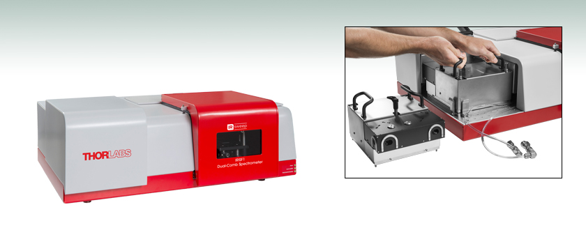 The IRISF1 spectrometer features user exchangeable quantum cascade laser frequency comb modules that allow for study from 1800 cm-1 to 900 cm-1 with a bandwidth of up to 60 cm-1.