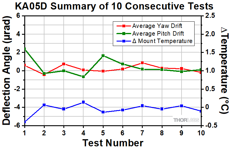 Conclusions: PolarisKA Mirror Mounts are high-quality, ultra-stable mounts that will reliably return a mirror to its original position after cycling through a temperature change. As a result, PolarisKA mounts are ideal for use in applications that require long-term alignment stability.
