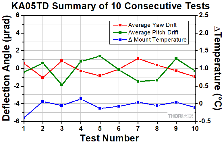 Conclusions: PolarisKA Mirror Mounts are high-quality, ultra-stable mounts that will reliably return a mirror to its original position after cycling through a temperature change. As a result, PolarisKA mounts are ideal for use in applications that require long-term alignment stability.