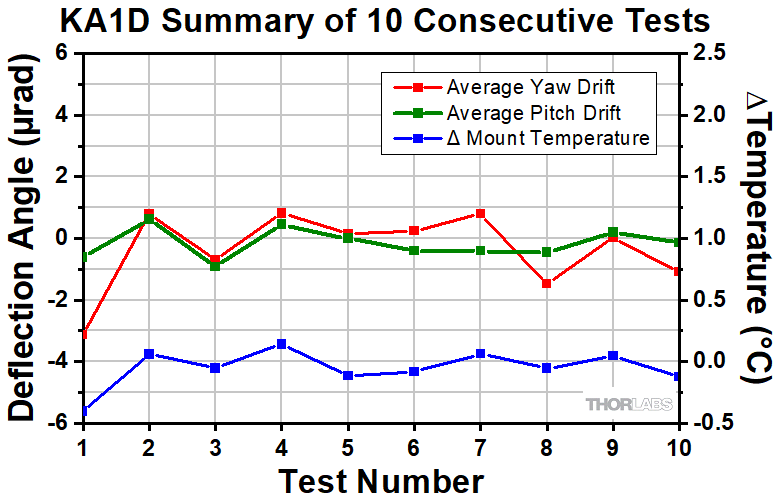 Conclusions: PolarisKA Mirror Mounts are high-quality, ultra-stable mounts that will reliably return a mirror to its original position after cycling through a temperature change. As a result, PolarisKA mounts are ideal for use in applications that require long-term alignment stability.