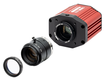 The MVF63A machine vision filter is attached to an MVL16M23 lens mounted on a CS2100M-USB camera