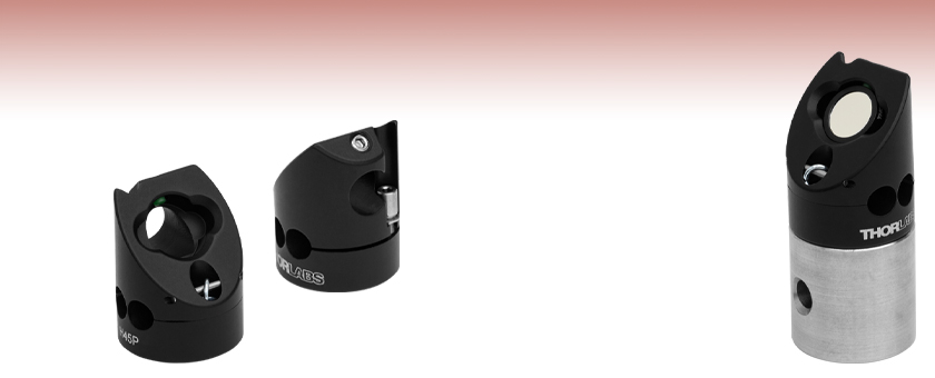 Thorlabs also offers the MA45-2 and MA45-50/M 45° mounting adapters for our KM100 or KM200 mirror mounts, or the POLARIS-MA45(/M) 45° Mounting Adapters for our standard Ø1" Polaris kinematic mirror mounts.