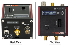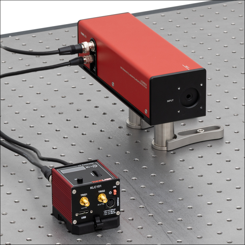 The KLC101 liquid crystal controller is designed with the feedback needs of the LCDR633 in mind and provides active DC offset compensation while applying an AC voltage (0 to 25 Vrms). The DC offset compensation automatically zeros the DC bias across the LC device in order to counteract the buildup of charge.