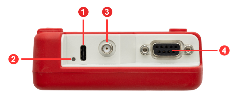 In addition to remote control operation and data logging/recording, the USB Type-C connector also acts as the charging system for the Li-Polymer battery using the provided USB Type-C to Type-A cable and any USB charger, such as our DS5 power supply, or computer USB port. The PM100D3 console's wireless charging coil can be used with any compatible wireless charging transmitter rated at 5 W with up to 1 A (not included with purchase).