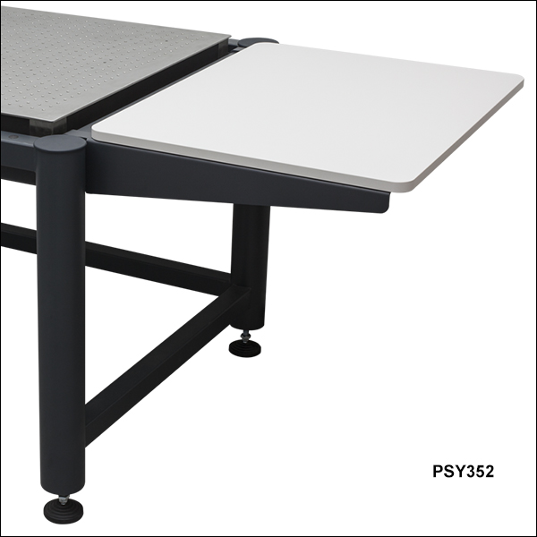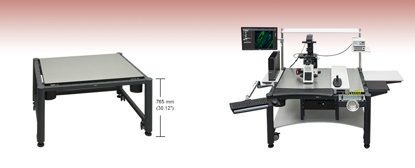 The work surface of the ScienceDesk is mounted on rigid or vibration-isolating supports that are recessed within the frame rails to protect the tabletop from incidental contact. These steel frame rails also facilitate the strategic placement of shelves and other accessories around a system so that supporting equipment can be in close proximity to the isolated surface without being on it. See the Accessory Options tab or Figure 1.2 for sample ScienceDesk configurations.