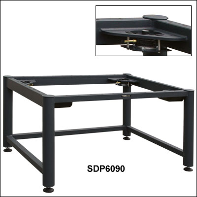 Each workstation is available with rigid (non-damping) or passive supports for applications requiring resolutions of <1 µm or <0.1 µm respectively. The passive anti-vibration frame provides the user with a tabletop that is isolated from the detrimental effects that vibrations in the lab may cause, while the rigid option will not isolate the breadboard from external vibrations. For more details on the different support options please see the Isolators tab.