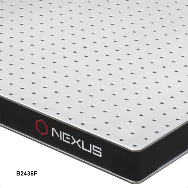 Our Nexus® Optical Breadboards feature all-steel construction with a honeycomb core, excellent thermal stability, and broadband damping optimized for each table. They provide a durable, rigid, 60 mm thick working surface that will quickly damp vibrations created on the tabletop. They are available with the standard 1/4"-20 (M6) hole pattern on 1" (25 mm) centers, with sealed or unsealed holes, and the option of 304L non-magnetic steel.
