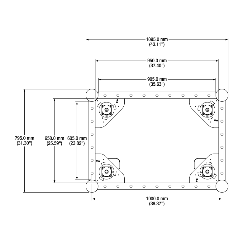 | Outer Frame Dimensions (Depth x Width) | 795 mm x 1095 mm (2.6' x 3.6') | ||