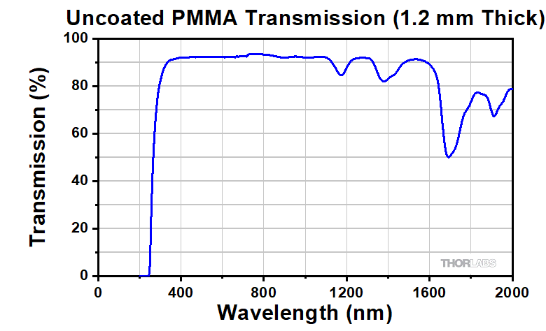 Thorlabs offers a wide variety of optical substrates that are ideal for use in various applications. Figure 1.1 compares the transmission ranges of some of the most common substrates we offer. This page details optical properties for these substrates, as well as the substrates used in our aspheric and achromatic lenses. To quickly navigate through these substrates, use the Table of Contents listed below or click on the tabs.