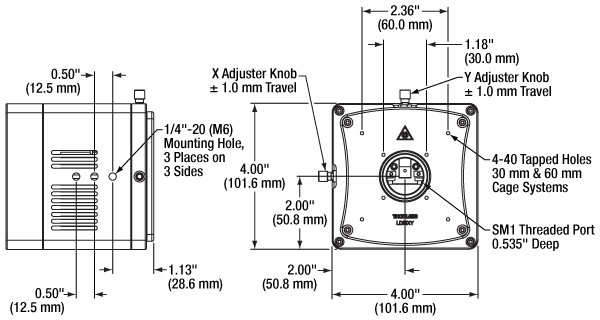 - SM1, 30 mm & 60 mm Cage System, and 1/4"-20 (M6) Post Compatible